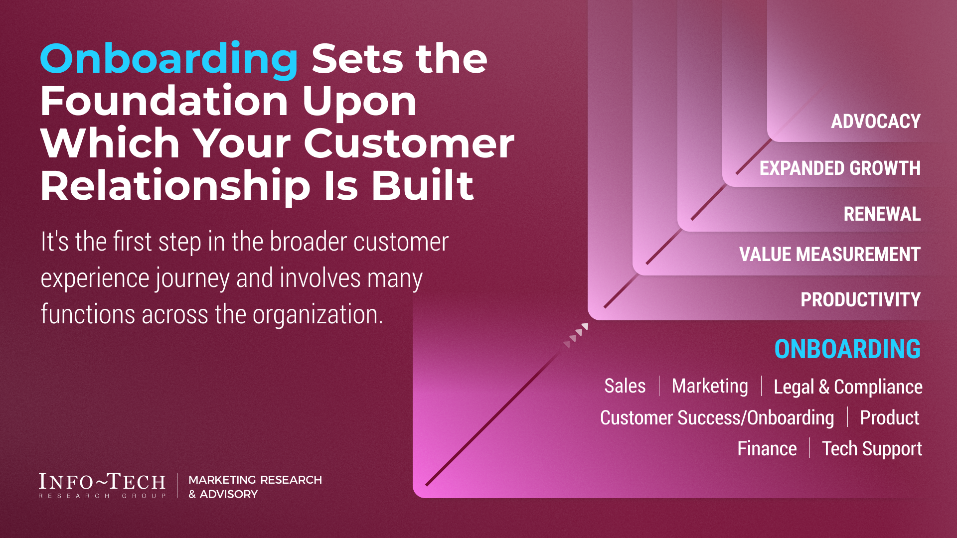 Onboarding is the first step in the broader customer experience journey and involves many functions across the organization, making internal alignment and coordination the absolute critical success factor. By working together across functions to succeed in the early stages of the customer relationship, organizations set themselves up for high retention and maximal account growth.