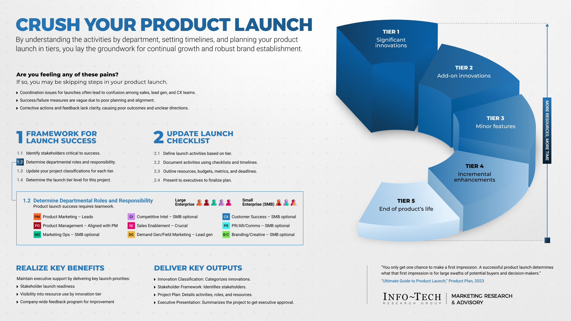1. Framework for Launch Success1.1 Identify key individuals critical to success 1.2 Determine departmental roles and responsibility 1.3 Update your project classifications for each tier 1.4 Determine launch tier level for this project |