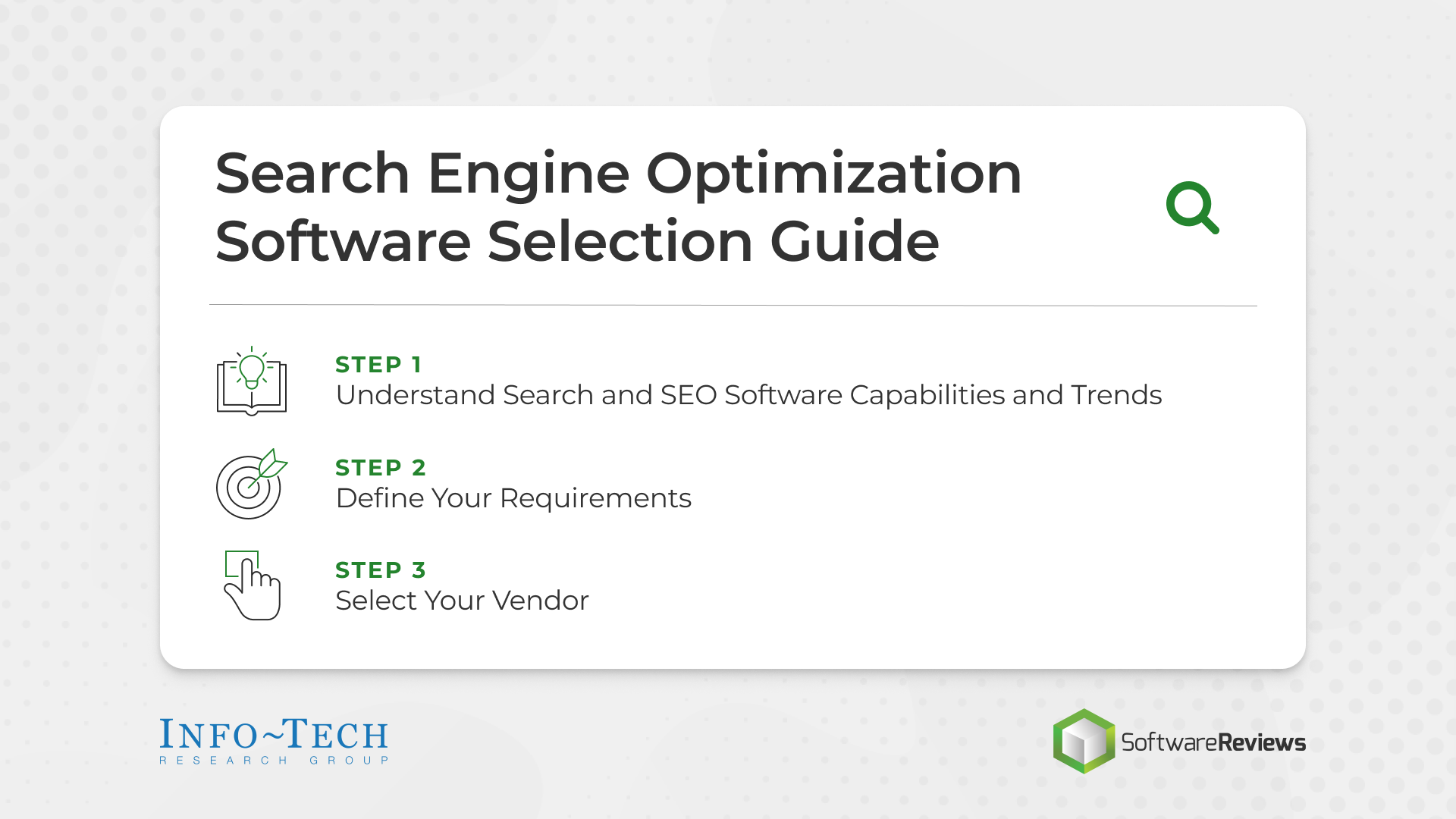 1. Understand Search and SEO Software Capabilities and Trends | 2. Define Your Requirements | 3. Select Your Vendor | |